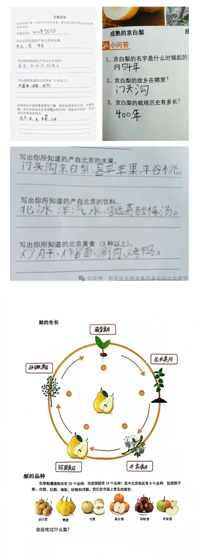 回校后,大家圍繞研學手冊開展多學科融合實踐活動,從文化、數(shù)據(jù)、科學等角度深入探究京白梨。